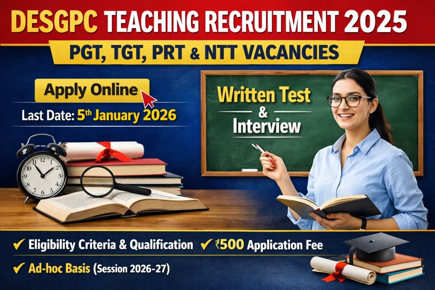 DESGPC Teaching Recruitment 2025 is a great opportunity for eligible teaching professionals to work in DESGPC-managed schools. Interested candidates should apply online before the last date and prepare well for the written examination and interview.