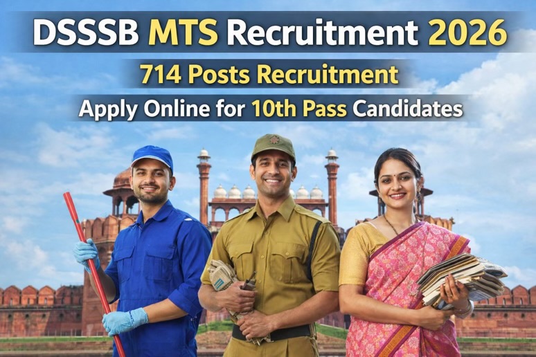 दिल्ली अधीनस्थ सेवा चयन बोर्ड (DSSSB) ने मल्टी टास्किंग स्टाफ (MTS) के कुल 714 पदों पर भर्ती के लिए आधिकारिक नोटिफिकेशन जारी कर दिया है। यह भर्ती दिल्ली सरकार के विभिन्न विभागों में की जाएगी। इच्छुक उम्मीदवार 17 दिसंबर 2025 से 15 जनवरी 2026 तक ऑनलाइन आवेदन कर सकते हैं।