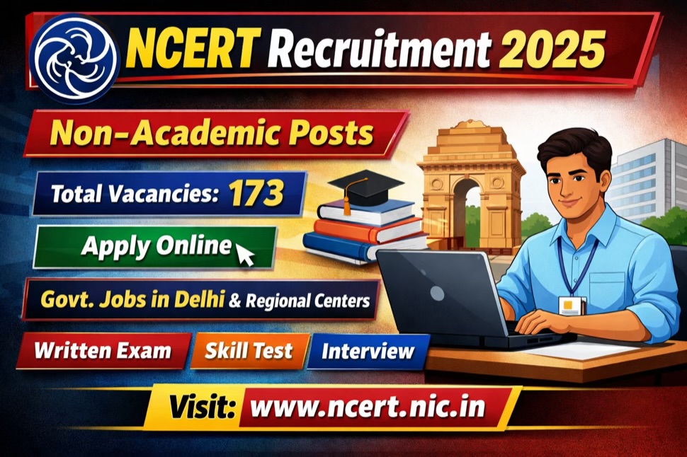 NCERT Non-Academic Recruitment 2025 का आधिकारिक नोटिफिकेशन जारी कर दिया गया है। राष्ट्रीय शैक्षिक अनुसंधान और प्रशिक्षण परिषद (NCERT) ने नई दिल्ली मुख्यालय और देशभर के विभिन्न क्षेत्रीय संस्थानों के लिए कुल 173 गैर-शैक्षणिक (Non-Academic) पदों पर सीधी भर्ती निकाली है। योग्य और इच्छुक उम्मीदवार ऑनलाइन माध्यम से आवेदन कर सकते हैं।