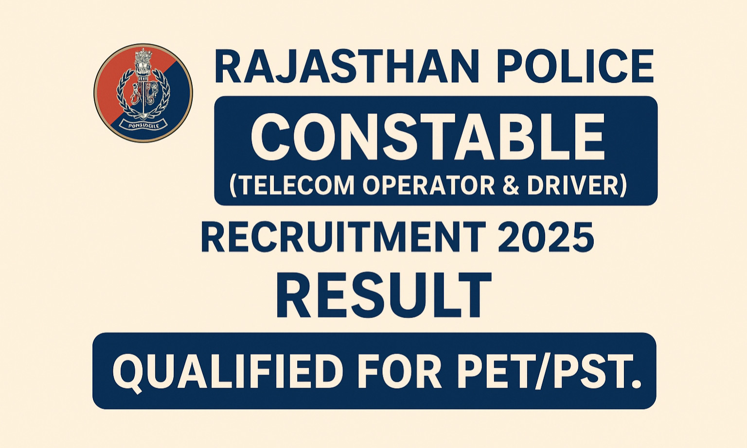 Rajasthan Police Result 2025 OUT:राजस्थान पुलिस कांस्टेबल (दूरसंचार ऑपरेटर एवं चालक) भर्ती-2025 – परिणाम और आगे की प्रक्रिया